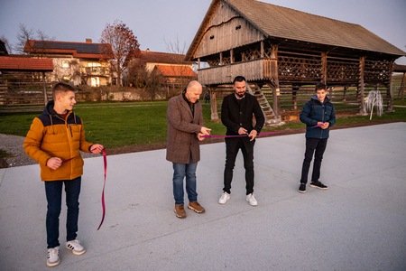 ODPRTJE PRENOVLJENE PLOŠČADI V DEŽELI KOZOLCEV // 29. 11. 202501.12.2025V soboto, 29. 11. 2025 je v Deželi kozolcev potekalo odprtje prenovljene ploščadi. Sredstva za namestitev poliuretanskega peščenega tlaku sta zagotovila Ministrstvo za kulturo in Občina Šentrupert. V sklopu investicije sta bila zamenjana tudi oba mostička v muzeju. Slavnostni prerez traku, ki sta ga izvedla župan Občine Šentrupert Tomaž Ramovš in direktor Zavoda Dežela kozolcev Primož Primec so popestrili mladi harmonikarji: Tjaš Medved, Žan Štrukelj in Filip Ahlin. Hvala lepa vsem! Foto: Rok Mihevc