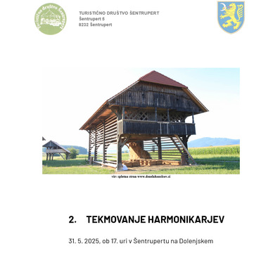 Turistično društvo Šentrupert vabi na drugo tekmovanje harmonikarjev, ki se bo odvijalo v času praznovanja občinskega praznika Občine Šentrupert oziroma na dan, ko se v Šentrupertu odvija tradicionalna Cvičkarija.