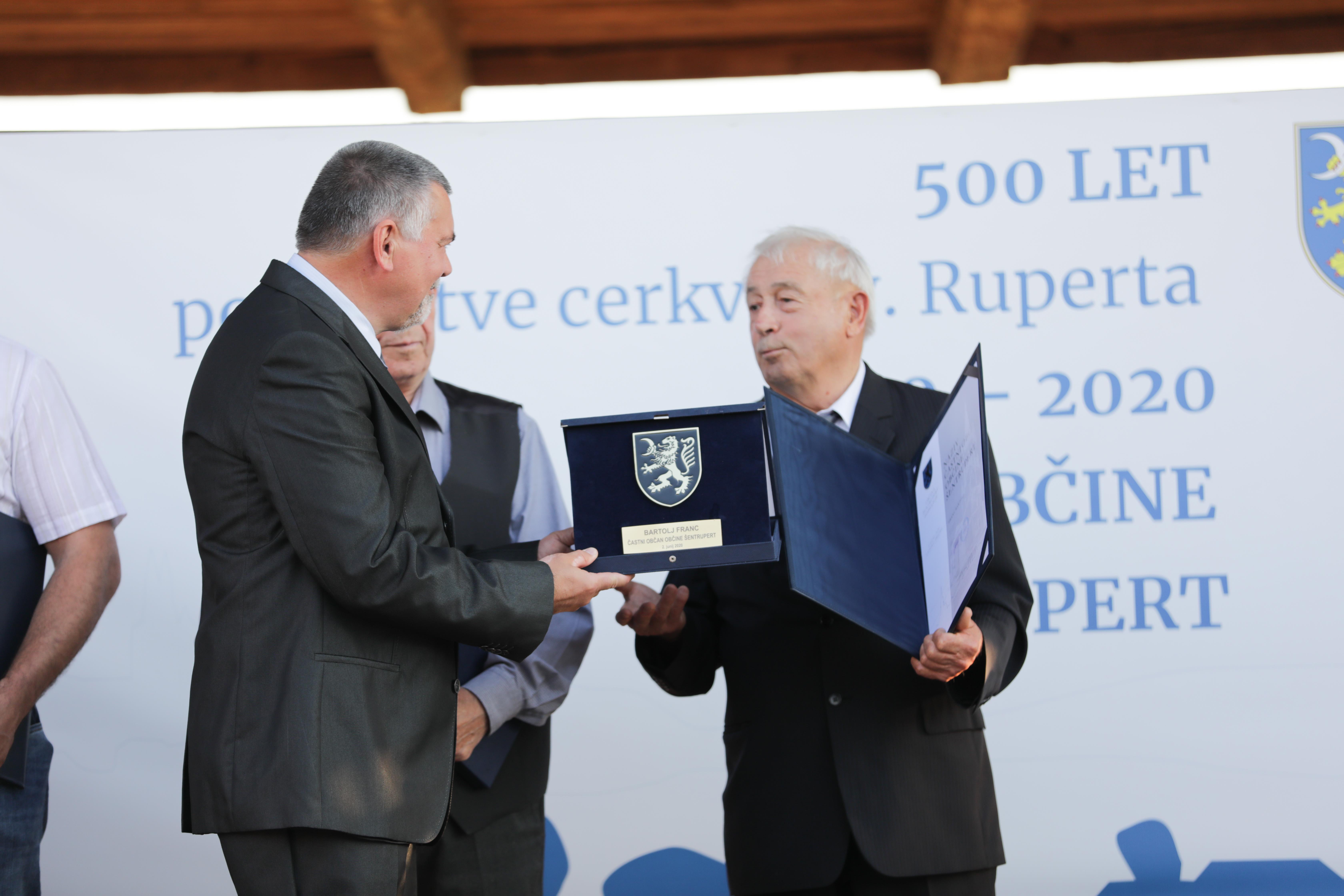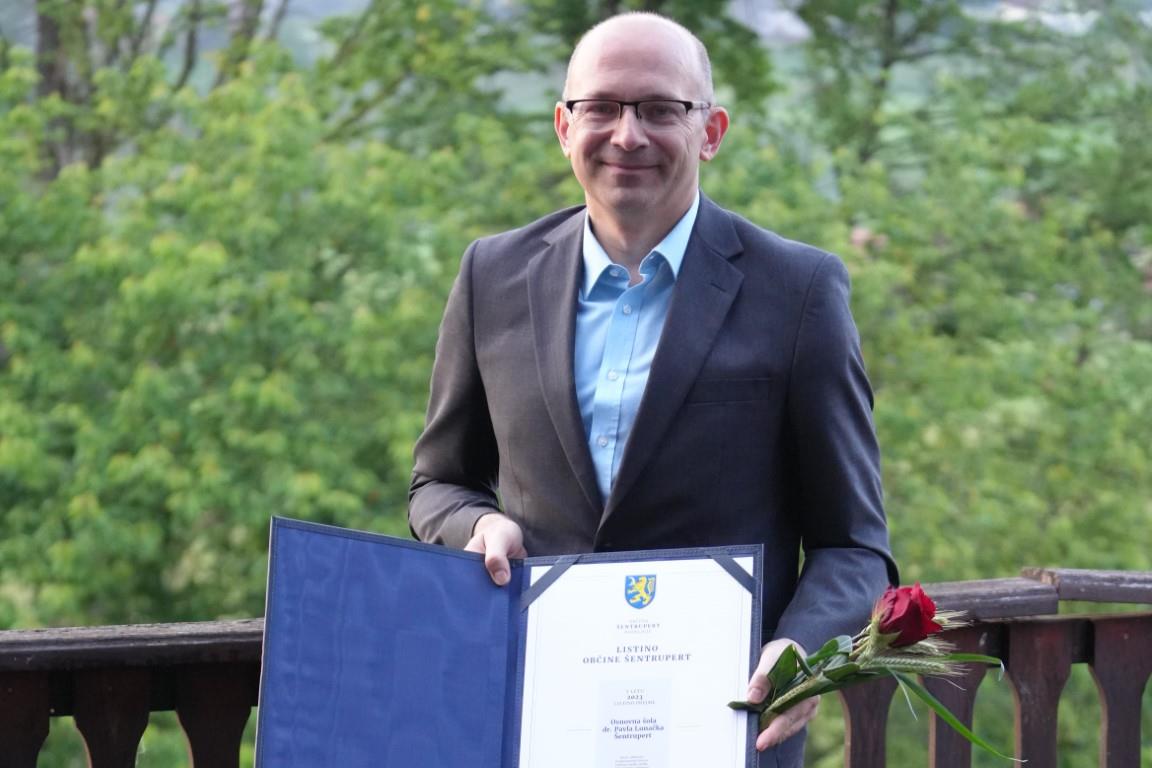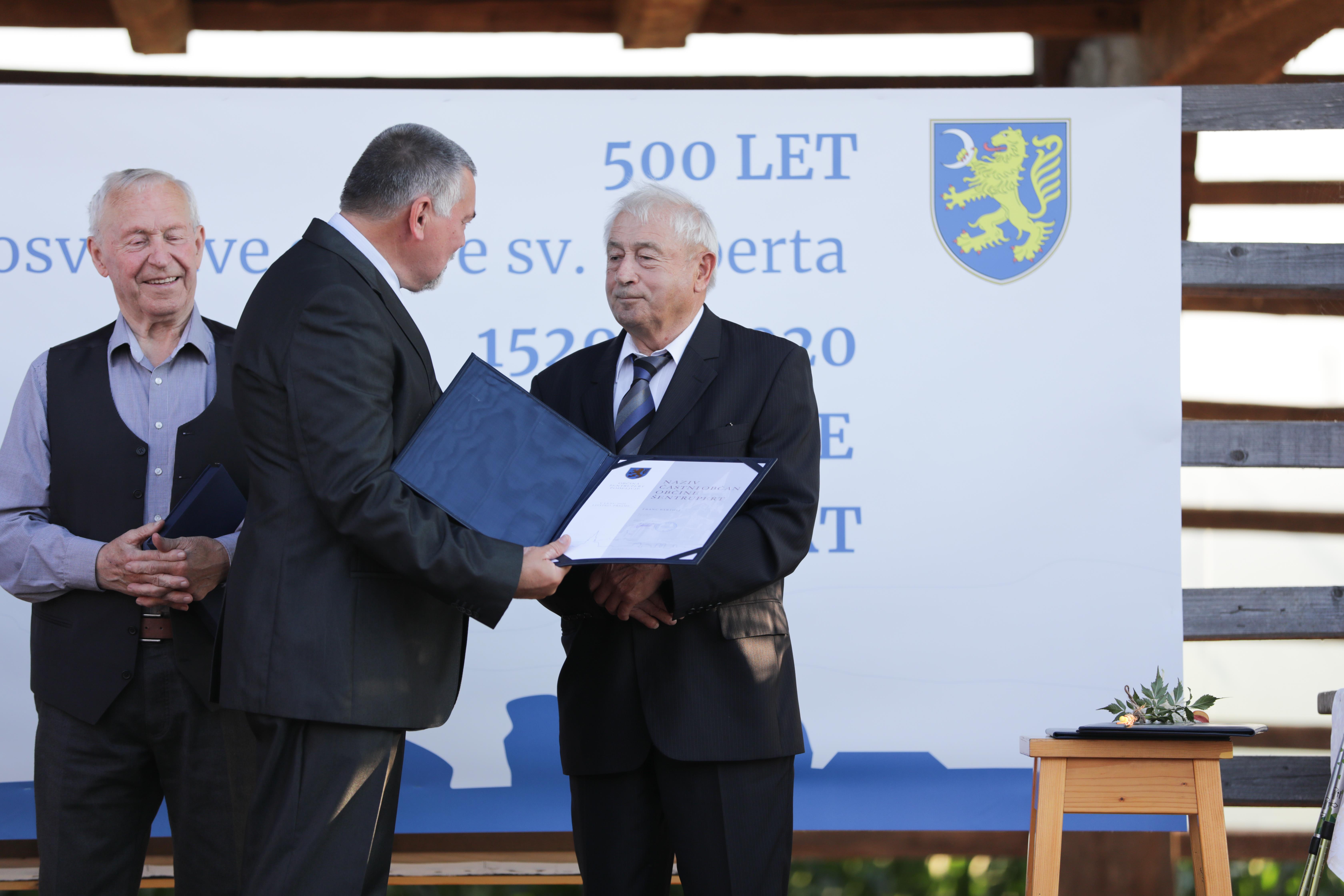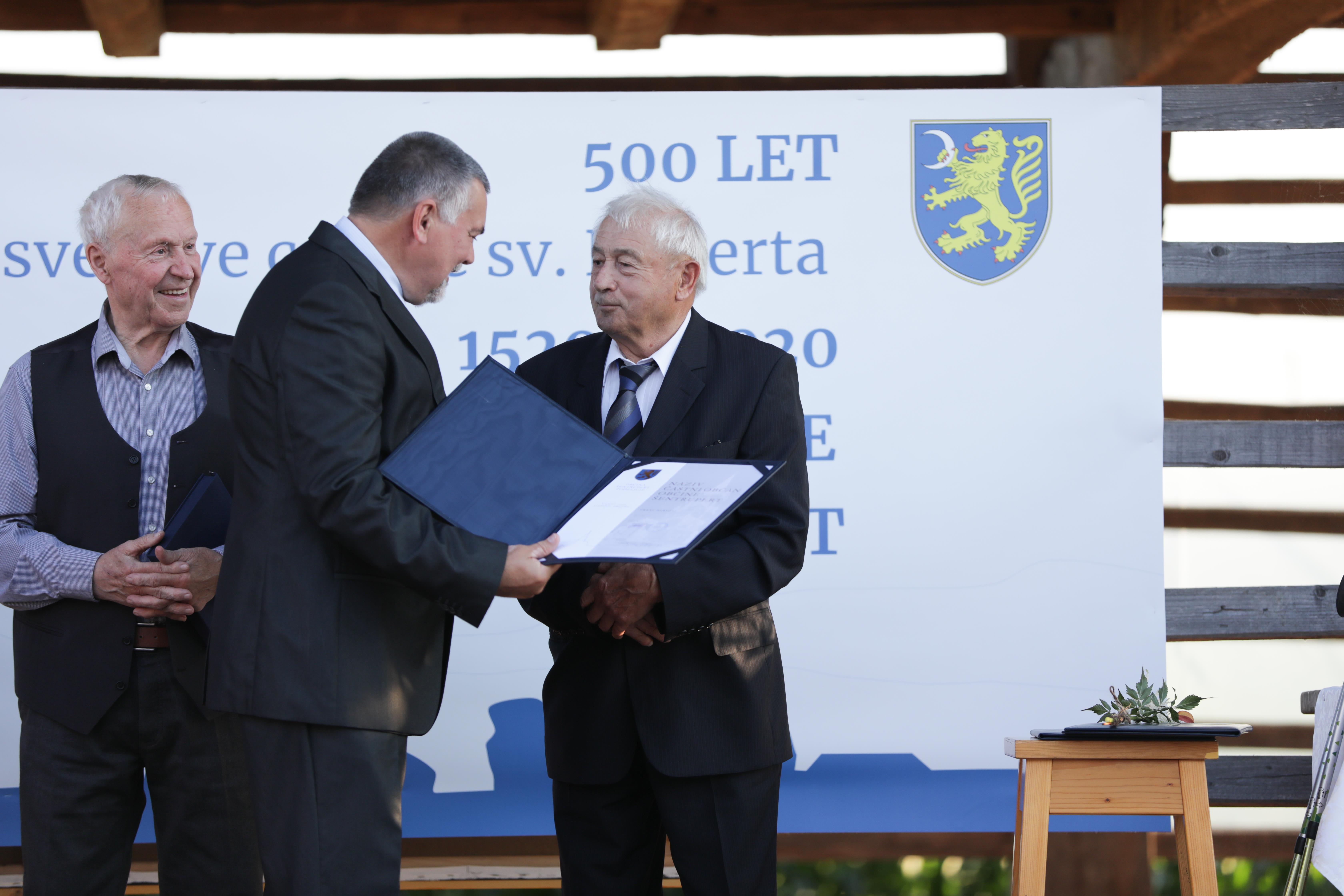 Šesti častni občan je Jože Brcar, priznanje dr. Jožetu Uhanu, listina OŠ dr. Pavla Lunačka Šentrupert