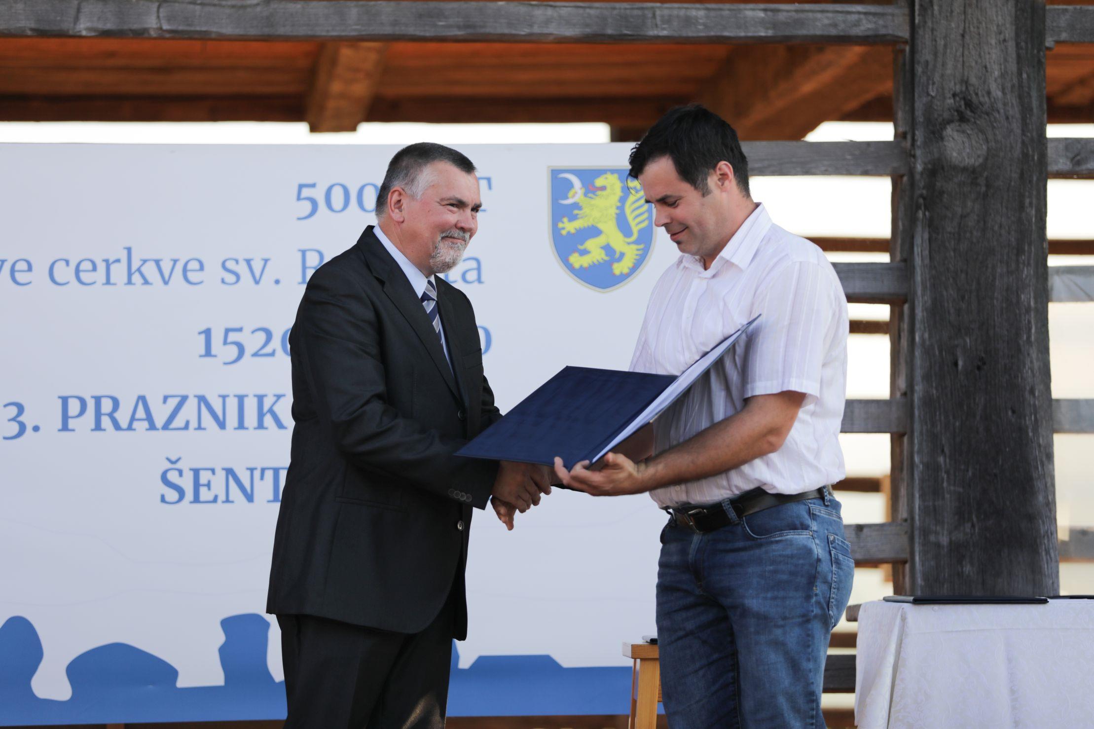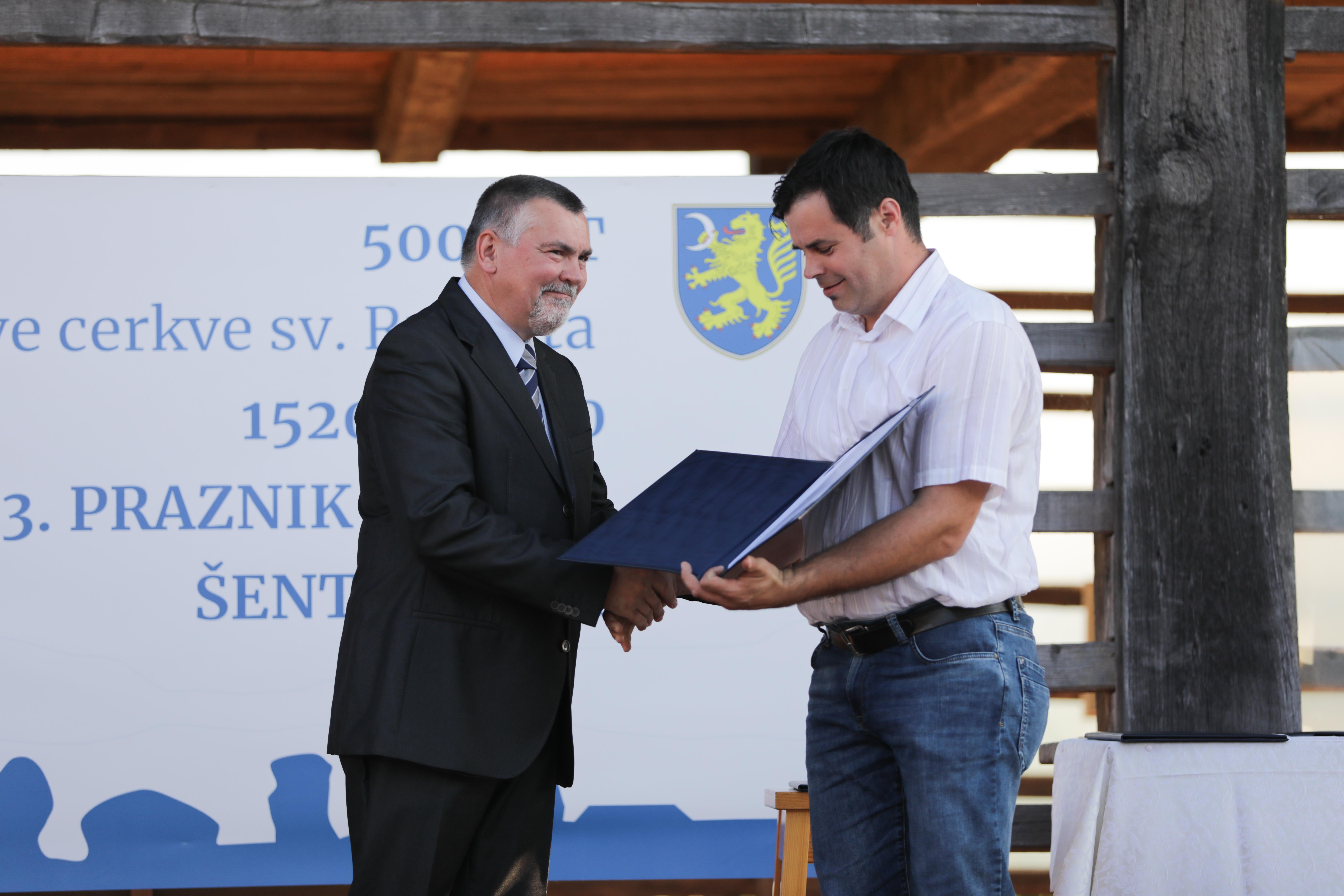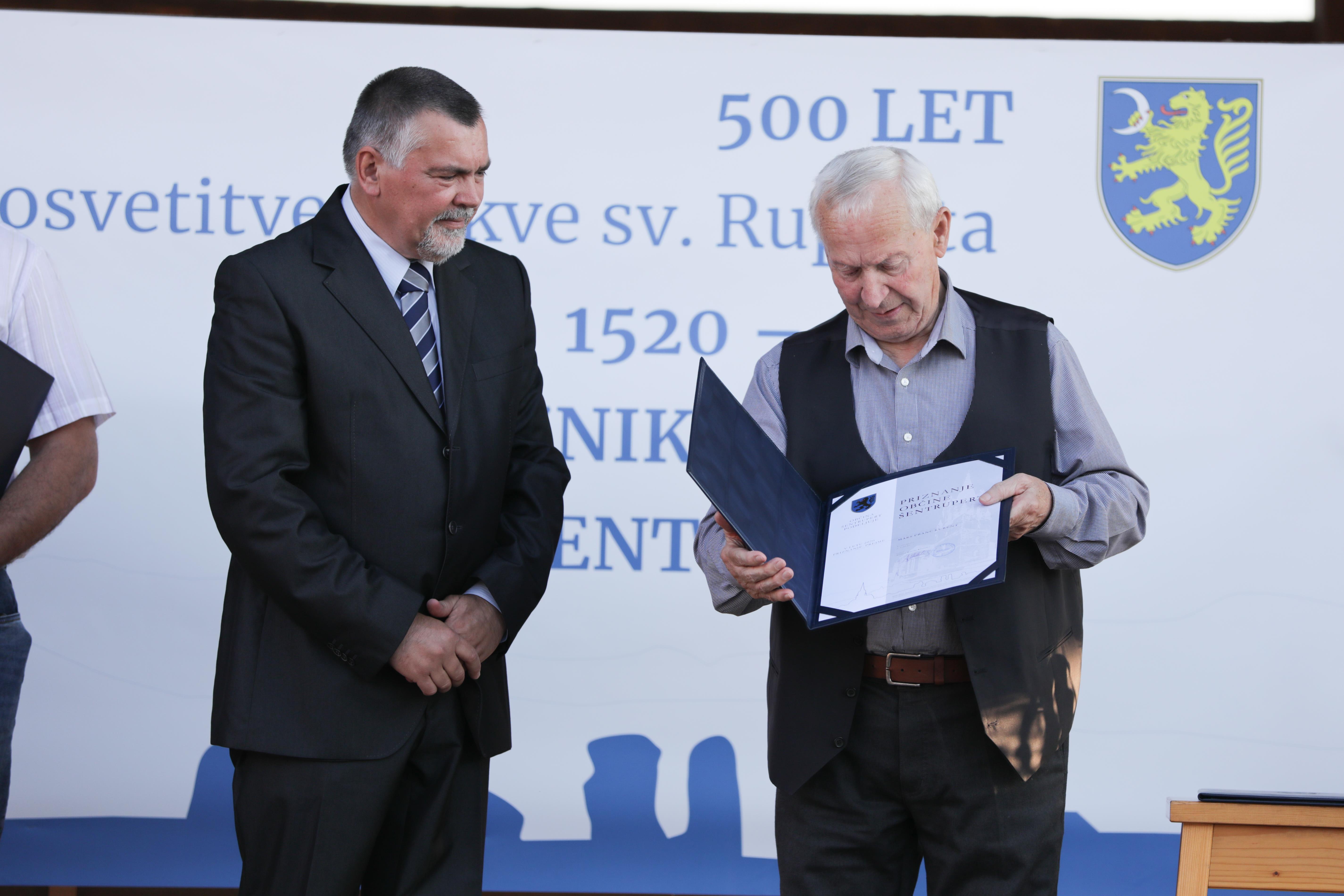 Šesti častni občan je Jože Brcar, priznanje dr. Jožetu Uhanu, listina OŠ dr. Pavla Lunačka Šentrupert