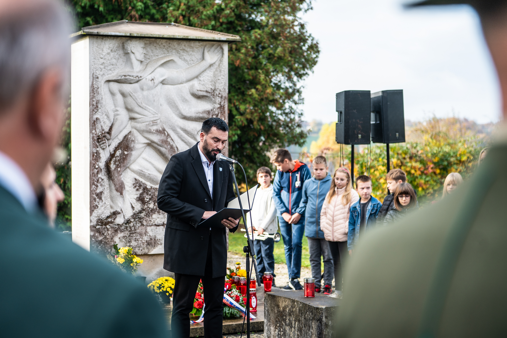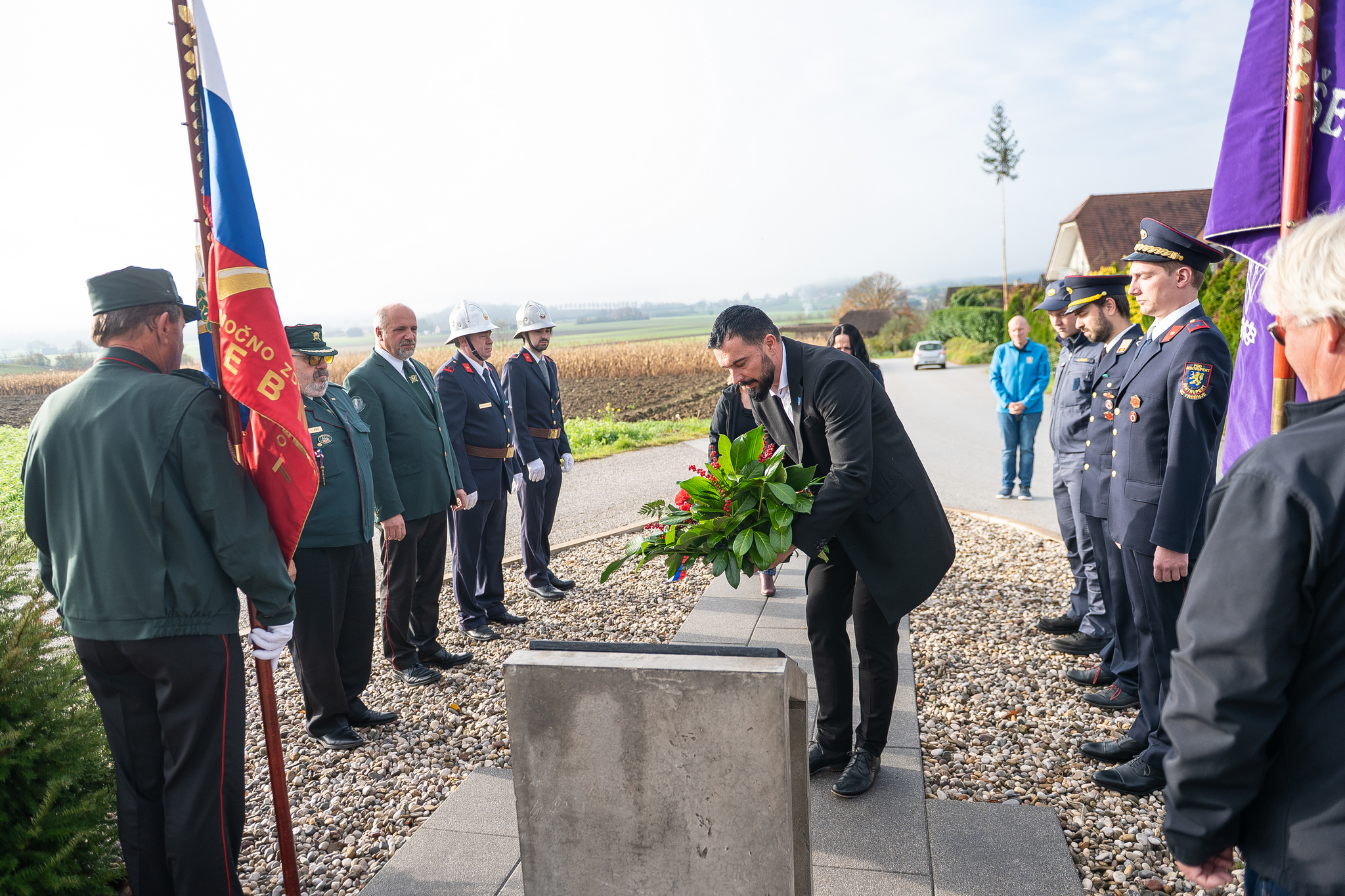 POLAGANJE CVETJA PRI OBELEŽJU IN ŽALNA SLOVESNOST
