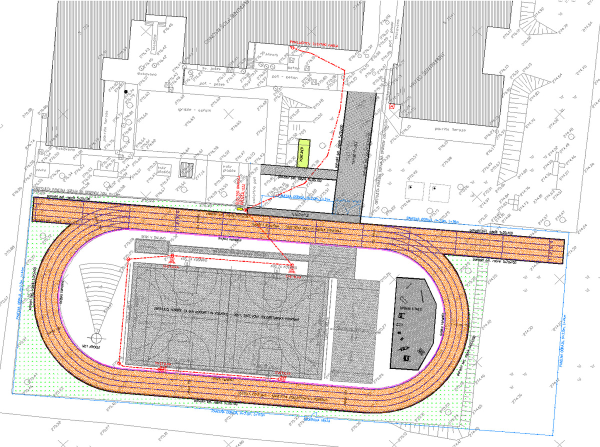 - obnovljena atletska steza s 4 tekalnimi stezami - 1 kos,