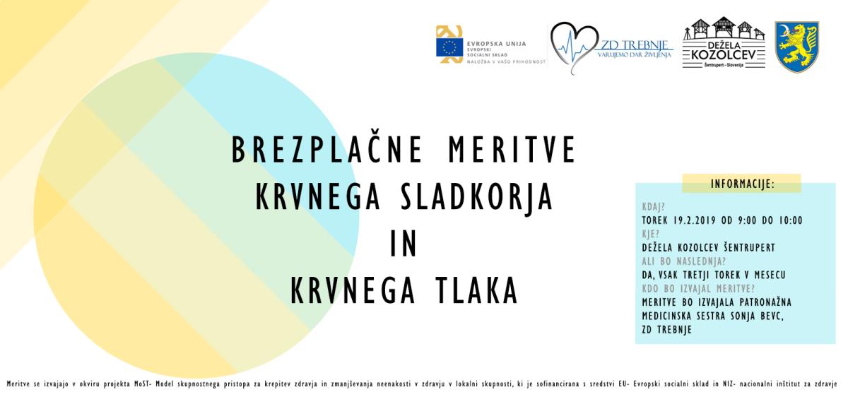 Vabljeni na brezplačne meritve krvnega sladkorja in krvnega tlaka, katere bo patronažna medicinska sestra Sonja Bevc iz ZD Trebnje izvajala vsak tretji torek v mesecu med 9.00 in 10.00 uro v Deželi kozolcev Šentrupert (v predavalnici Kovačija).