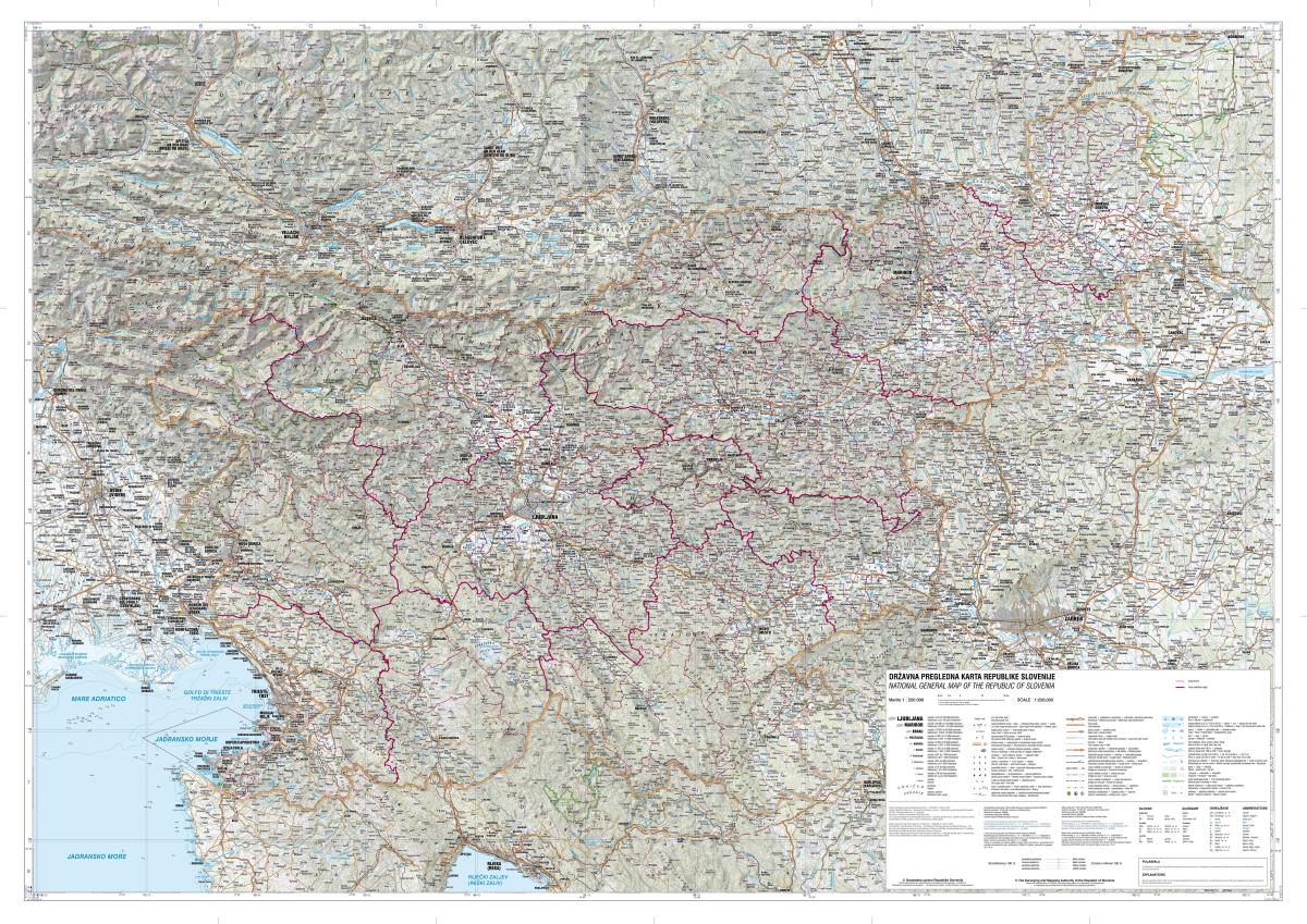 Geodetska uprava je pripravila Državno pregledno karto v merilu 1 : 250.000 z vrisanimi mejami občin in stastističnih regij.