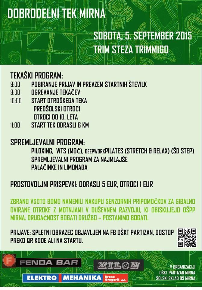 ORGANIZATORJA: DŠKT Partizan Mirna in Šolski sklad OŠ Mirna. V lanskem letu je bil tek izredno dobro obiskovan, saj se ga je udeležilo preko 200 tekačev vseh generacij.